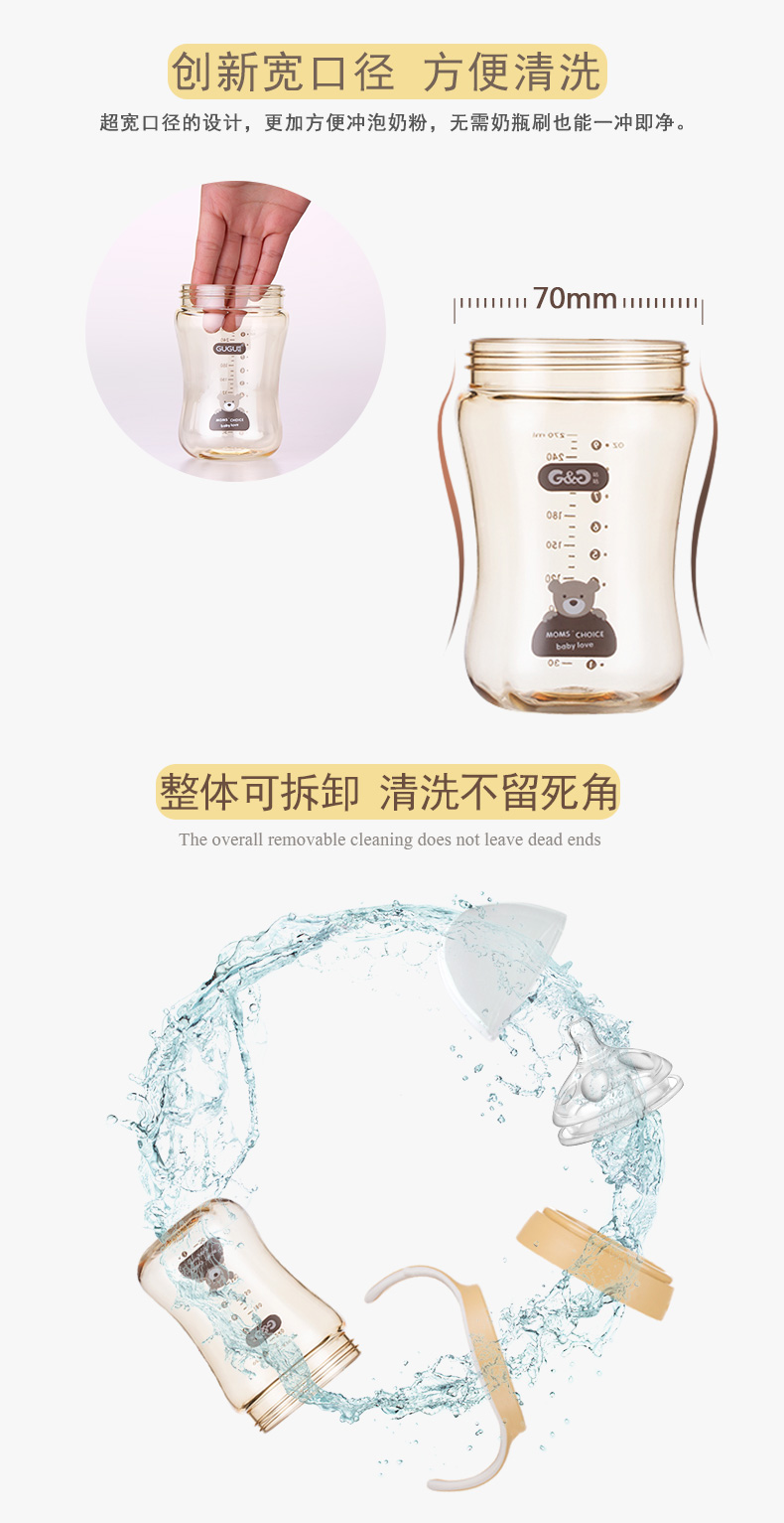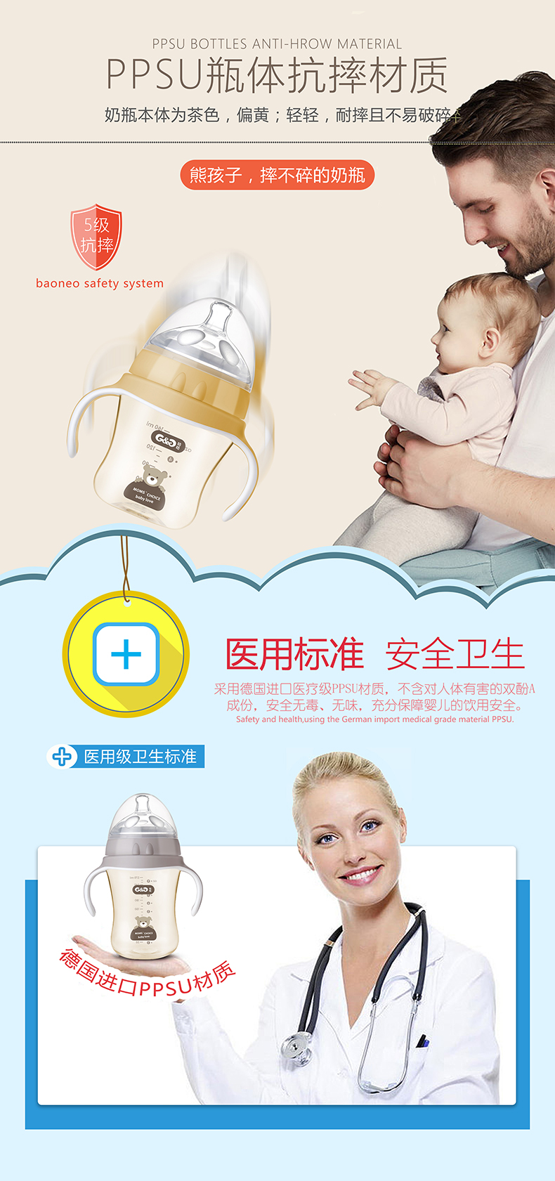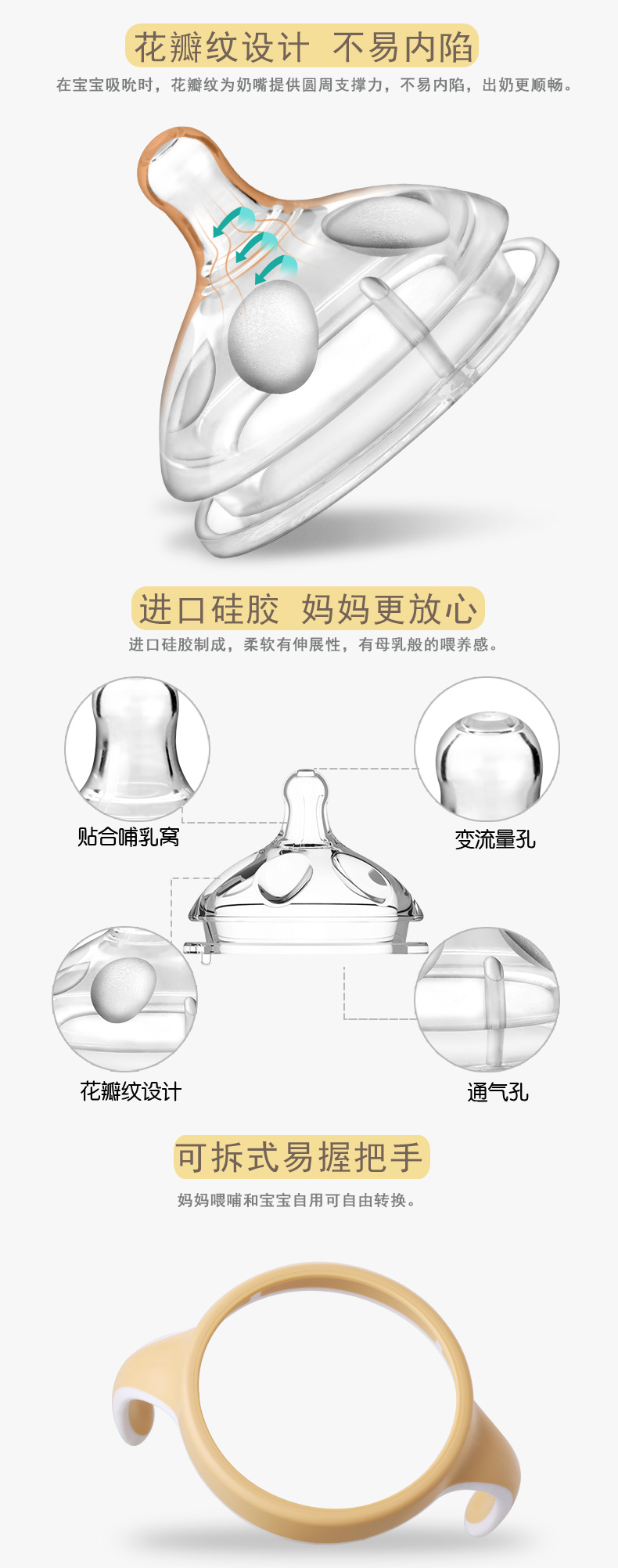 顏 色:都市灰/典雅黃/簡約白 材 質(zhì):PPSU(奶瓶瓶身呈淡茶色)